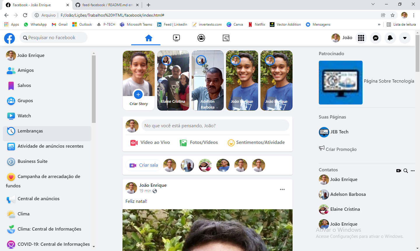 Frontend com: HTML, CSS, JavaScript, Bootstrap, Tailwind, React.JS.